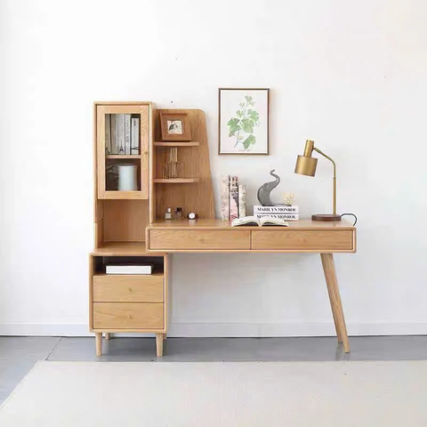 Tích hợp kệ và tủ thông minh: Vừa có không gian làm việc rộng rãi, vừa có khu vực để sách, tài liệu, đồ trang trí, giúp sắp xếp ngăn nắp và tiết kiệm diện tích.