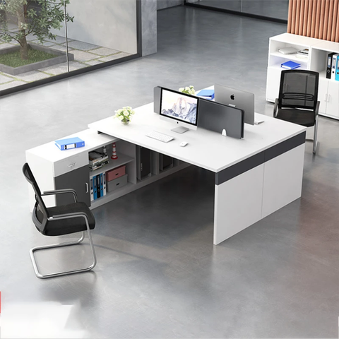 Bàn văn phòng hiện đại thiết kế dạng cụm đôi, phù hợp cho không gian làm việc nhóm chuyên nghiệp. Mặt bàn rộng rãi với vách ngăn lửng tạo không gian riêng tư, tích hợp tủ phụ chứa tài liệu tiện lợi. Bàn được làm từ gỗ công nghiệp MDF phủ Melamine cao cấp, chống trầy xước, chống thấm nước, dễ vệ sinh. Kiểu dáng vuông vức, màu trắng – xám sang trọng, mang đến không gian làm việc tinh tế và hiện đại.