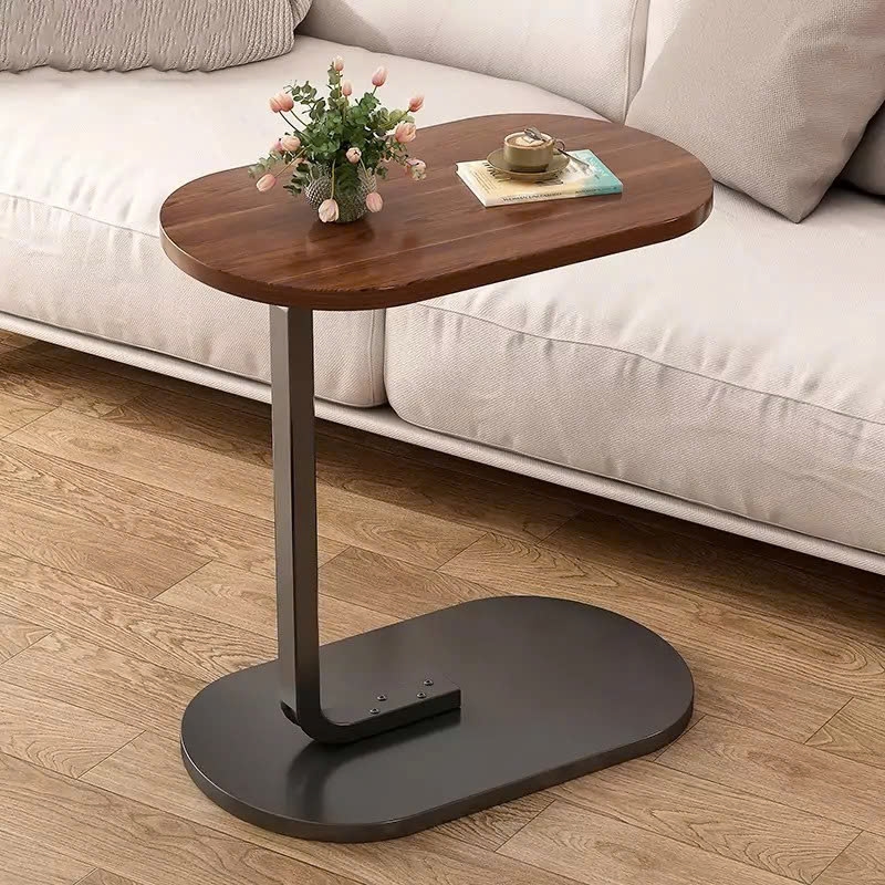 Chiếc bàn trà cạnh sofa mang thiết kế hiện đại, tinh tế với kiểu dáng nhỏ gọn và tiện dụng. Mặt bàn hình bầu dục bo tròn mềm mại giúp tăng tính thẩm mỹ, đồng thời đảm bảo an toàn khi sử dụng, đặc biệt trong không gian có trẻ nhỏ. Phần chân bàn thiết kế dạng chữ C độc đáo, giúp dễ dàng lồng vào ghế sofa hoặc giường, tối ưu không gian sử dụng.