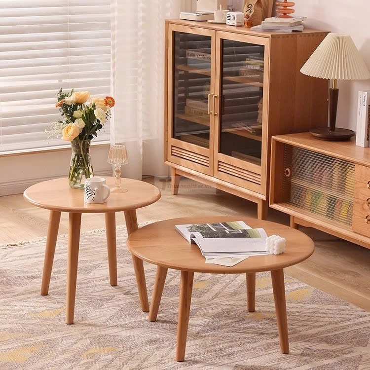 Bàn Trà Tròn Gỗ Thông Tự Nhiên Sang Trọng
