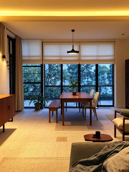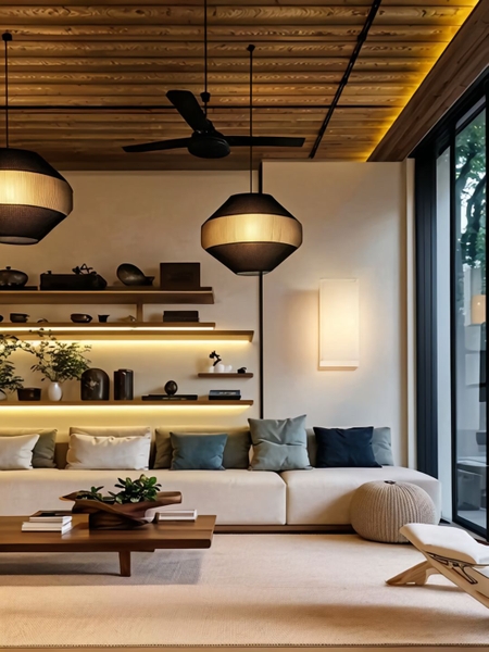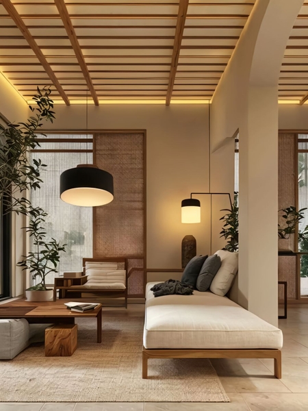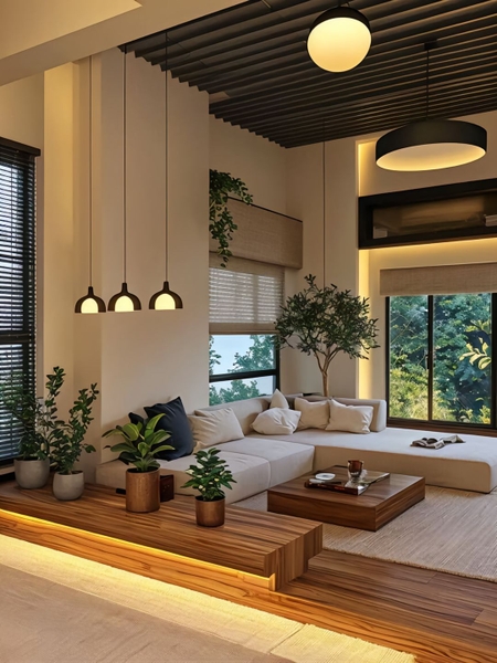 Hệ thống chiếu sáng thông minh: Đèn LED viền trần kết hợp ánh sáng tự nhiên tạo sự cân bằng hiện đại và thư thái.