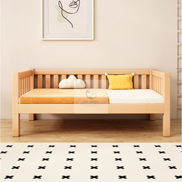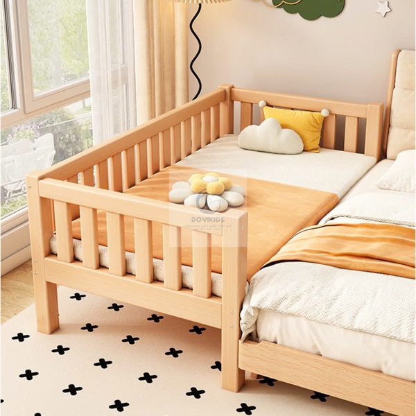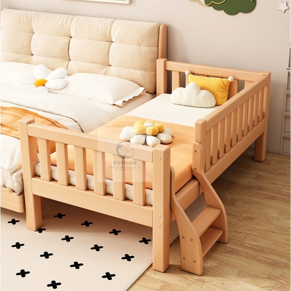 1. Thiết kế đa năng: Giường có các thanh chắn bảo vệ xung quanh giúp bé an toàn khi ngủ mà không sợ bị ngã ra ngoài. Giường còn được trang bị bằng một cái cầu thang nhỏ giúp bé dễ dàng lên xuống và tập luyện tính tự lập từ sớm