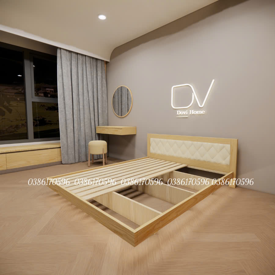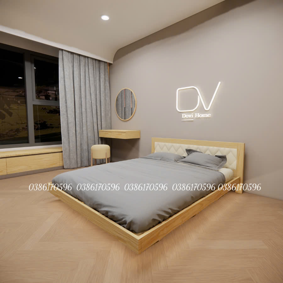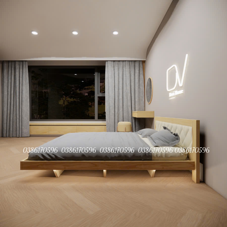 - Màu sắc: Giường có màu sắc chủ đạo là màu gỗ tự nhiên, tạo nên sự hài hòa với không gian phòng ngủ. Phần bọc nệm đầu giường thường có màu tương phản hoặc cùng tông với màu gỗ để tạo điểm nhấn.
