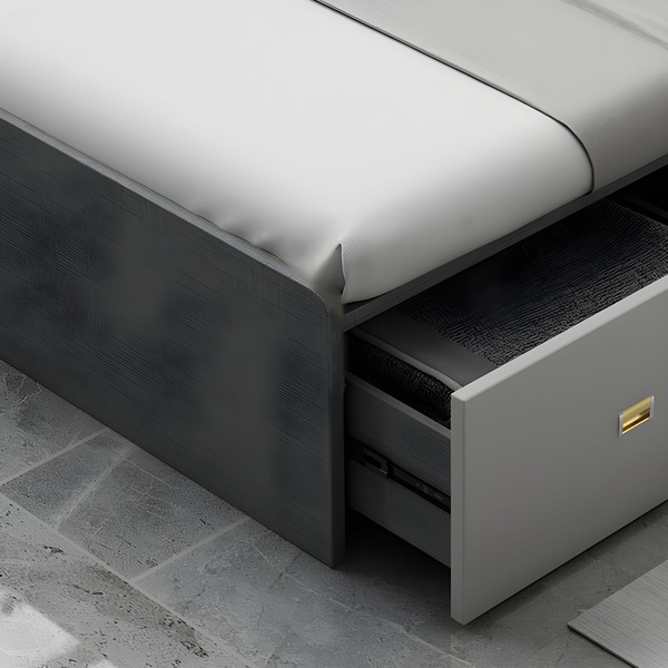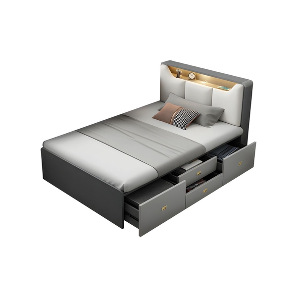 - Hệ thống ngăn kéo tích hợp giúp lưu trữ chăn, gối, quần áo một cách gọn gàng, tiết kiệm diện tích.