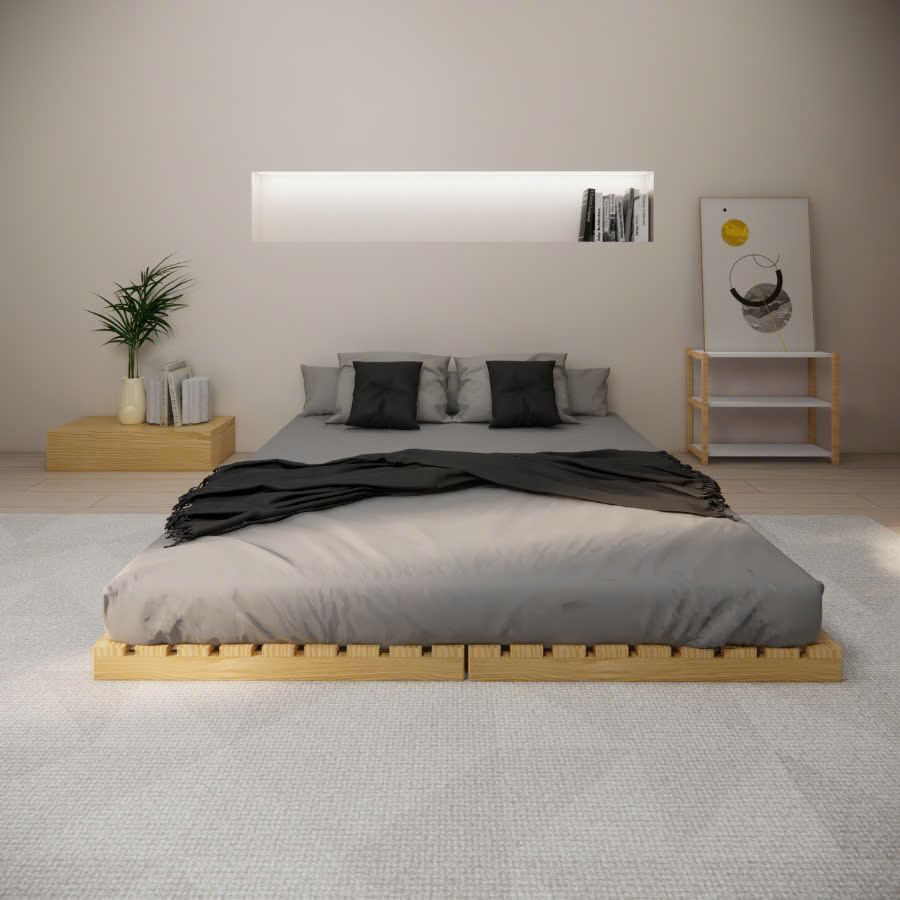 – Thân và vạt giường được làm từ 100% gỗ thông nhập khẩu.