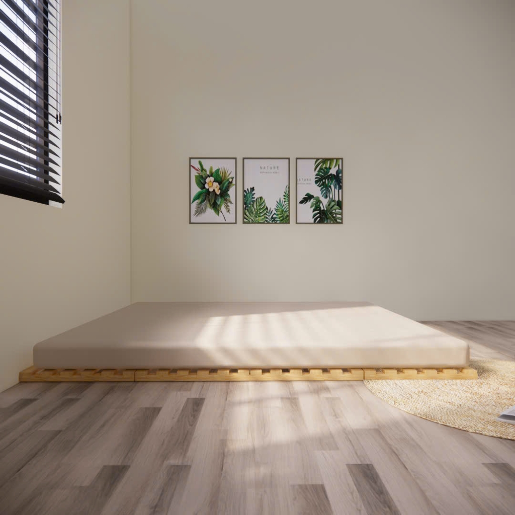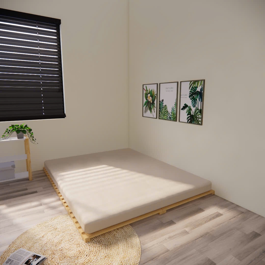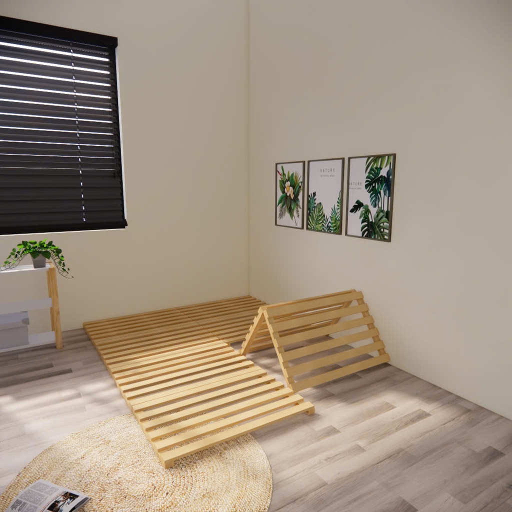 Chất liệu: Thường là gỗ thông nhập khẩu đã qua xử lý. Loại gỗ này mang đến cảm giác ấm cúng, gần gũi với thiên nhiên và có độ bền cao.
