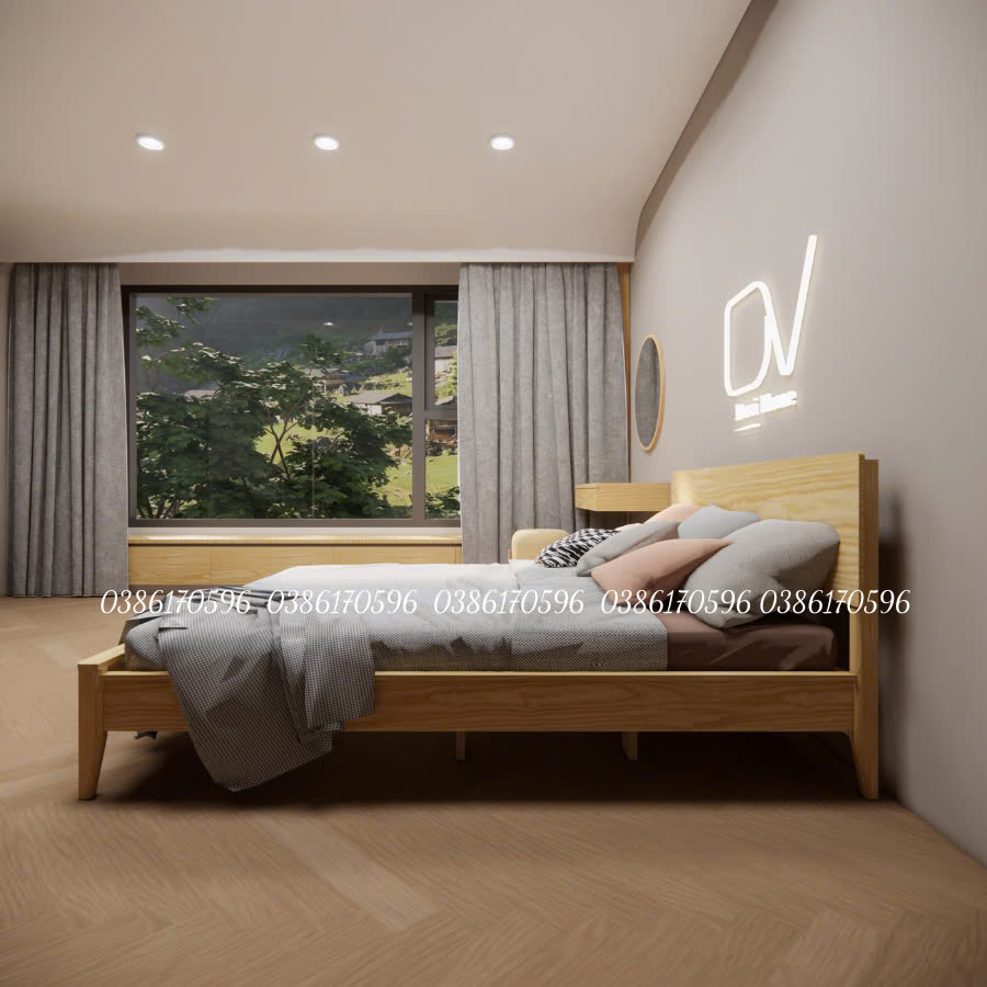 – Thân và vạt giường được làm từ gỗ thông nhập khẩu, với phần vân gỗ hiện lên cực đẹp và rõ nét.