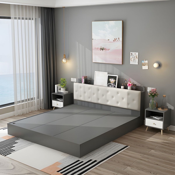 1. Thiết kế hiện đại: giường có kiểu dáng đơn giản và tinh tế với nhiều tông màu như màu xám, màu trắng, màu gỗ sáng,... phù hợp với không gian nội thất tối giản và hiện đại