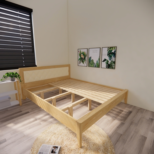 - Chân giường được làm từ gỗ tự nhiên được thiết kế thẳng đứng đảm bảo độ chắc chắn và chịu lực tốt.