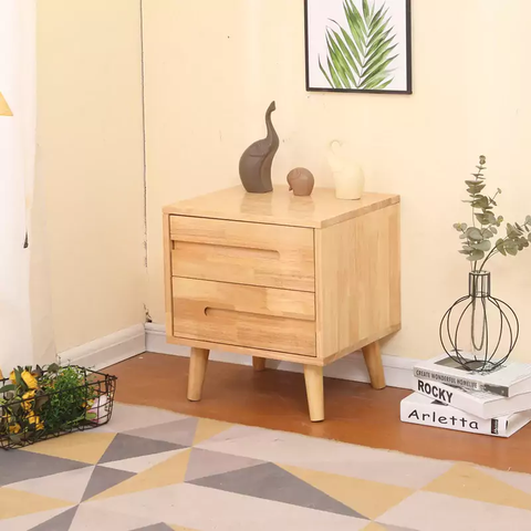 Tab đầu giường được làm từ gỗ tự nhiên đã qua xử lý kỹ lưỡng, có độ bền cao, khả năng chống cong vênh và mối mọt tốt. Bề mặt gỗ được phủ lớp sơn bóng mờ an toàn, giữ màu tự nhiên, mang lại vẻ đẹp mộc mạc, sang trọng cho không gian phòng ngủ. Chân tab gỗ chắc chắn, chịu lực tốt, giúp sản phẩm ổn định trong quá trình sử dụng.