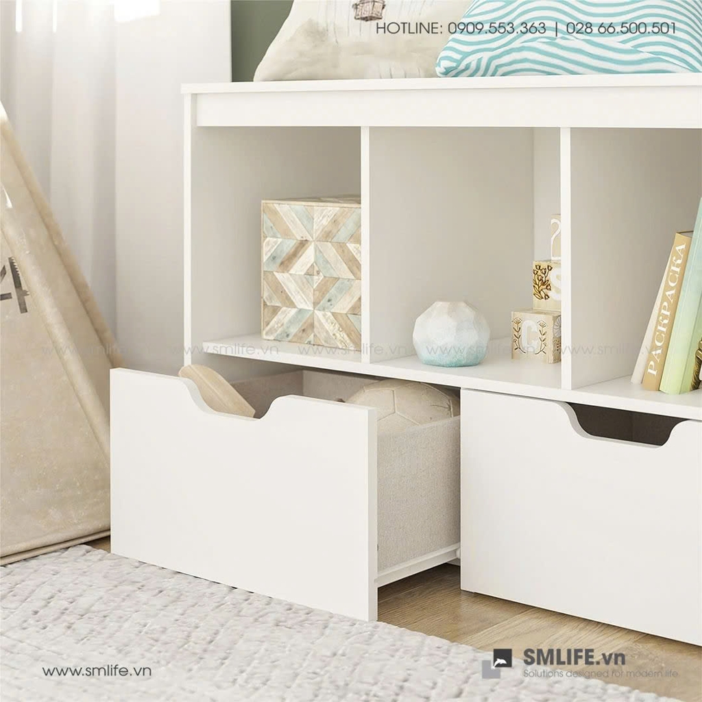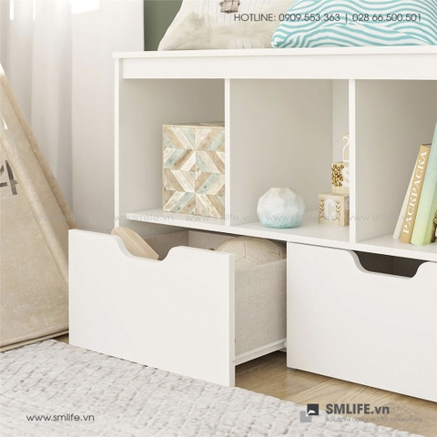 Đa năng tiện dụng: Có ngăn mở để trưng bày sách, đồ trang trí và ngăn kéo kín giúp cất giữ đồ gọn gàng, tránh bụi bẩn.