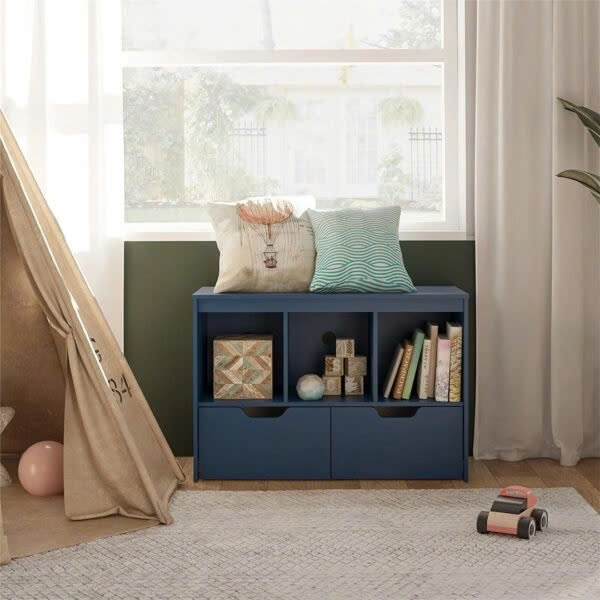 Kệ sách đa năng hiện đại được thiết kế với kiểu dáng gọn gàng tinh tế, phù hợp cho không gian phòng khách, phòng ngủ hoặc phòng của trẻ em. Kệ gồm 3 ngăn trống phía trên giúp trưng bày sách, đồ trang trí hoặc vật dụng nhỏ, cùng 2 ngăn kéo phía dưới giúp lưu trữ gọn gàng đồ chơi, tài liệu hay vật dụng cá nhân.
