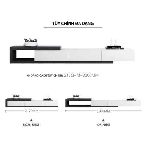 Đa công năng: Ngoài chức năng chính là kệ tivi, sản phẩm còn có thể dùng làm kệ sách, kệ trang trí, để lọ hoa hay đồ decor, giúp không gian sống thêm sinh động.