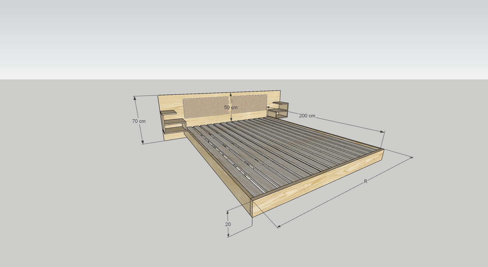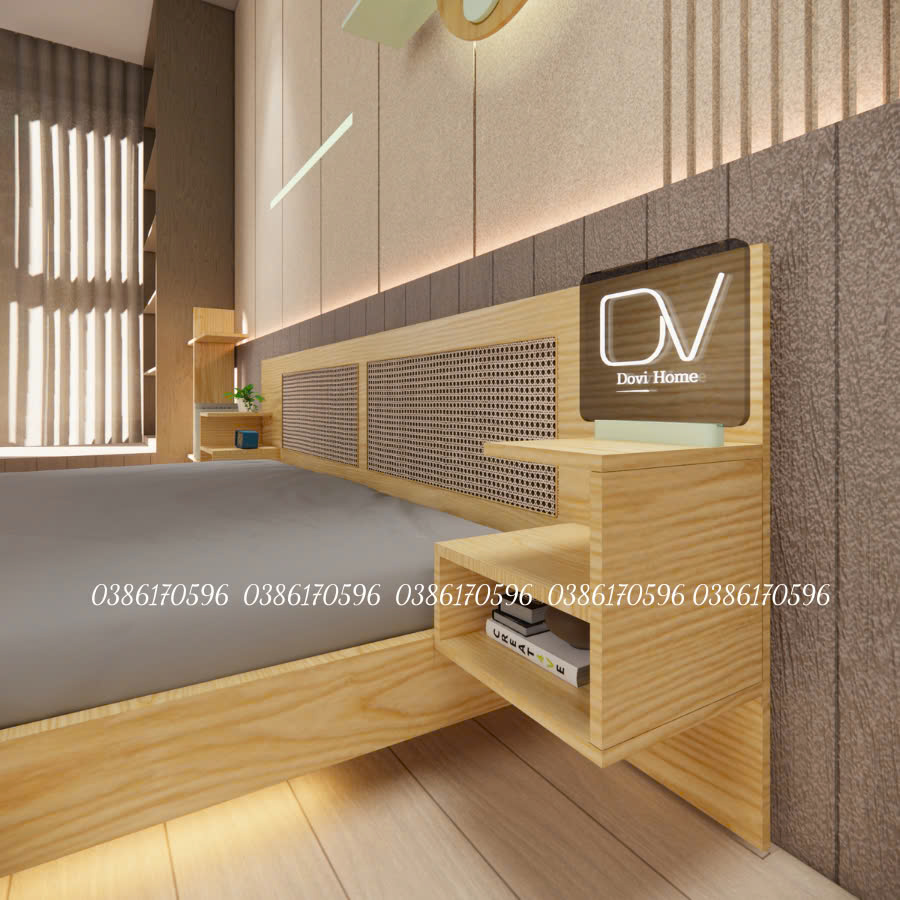 Điểm độc đáo của mẫu giường này chính là hai tab đầu giường được thiết kế thông minh. Chúng không chỉ tạo ra không gian lưu trữ tiện ích cho các vật dụng như đèn đọc, sách, hay điện thoại di động, mà còn tạo điểm nhấn thẩm mỹ độc đáo cho chiếc giường. Sự kết hợp giữa gỗ thông và mây nhựa tạo nên sự pha trộn hoàn hảo giữa tính năng và thẩm mỹ, mang đến không gian ngủ vượt qua sự mong đợi.