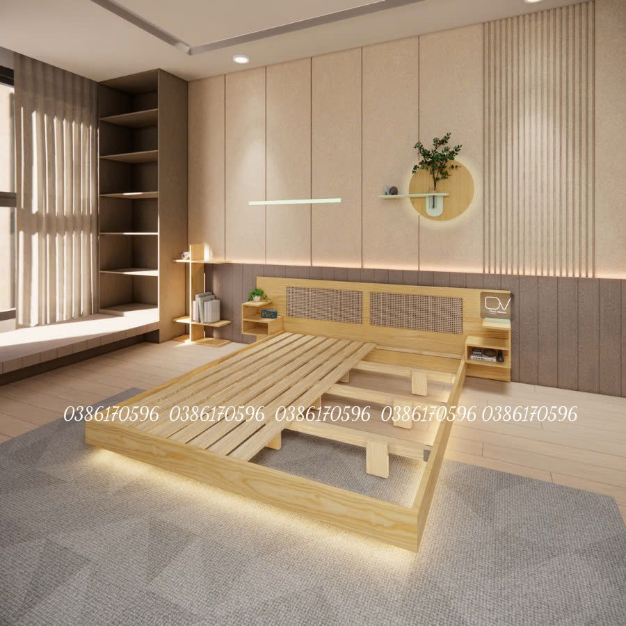 Chiếc giường trong hình mang phong cách hiện đại, tối giản với thiết kế thấp sàn, mang lại cảm giác gần gũi, thư giãn và phù hợp với xu hướng nội thất hiện đại. Chất liệu gỗ tự nhiên, kết hợp cùng đệm xám trung tính, tạo nên tổng thể hài hòa, nhẹ nhàng và dễ phối hợp với nhiều phong cách nội thất khác nhau.