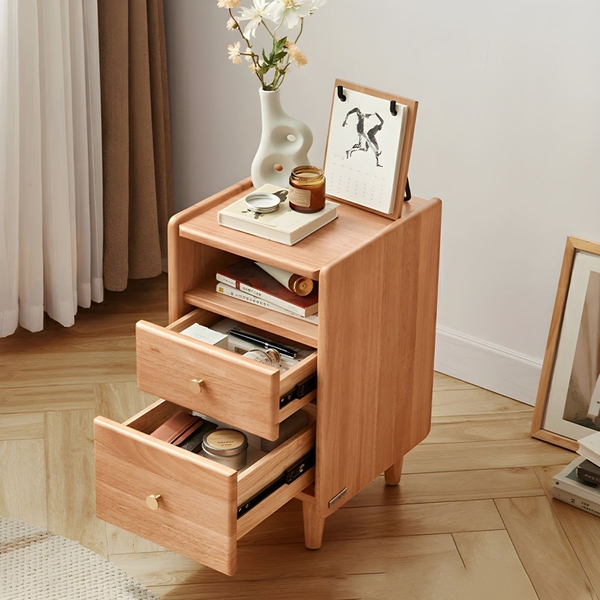 Thiết kế: 2 ngăn kéo + 1 hộc mở phía trên + mặt trên để trang trí hoặc đặt đèn ngủ