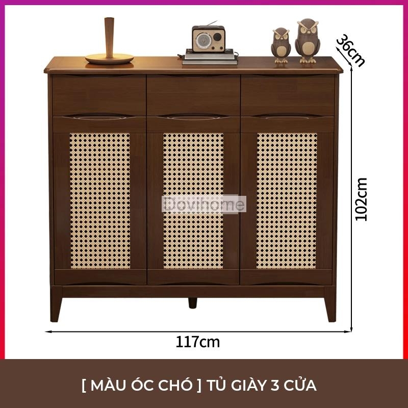 Tủ Giày Gỗ Tự Nhiên Kết Hợp Mây Tre Đan Cao Cấp