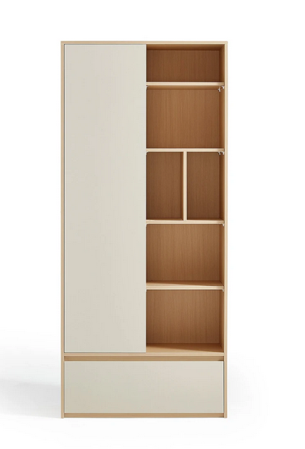 Thiết kế hiện đại – tối giản: Kiểu dáng gọn gàng, phối màu vân gỗ sáng kết hợp trắng tinh tế, phù hợp với nhiều không gian nội thất từ phòng khách, phòng ngủ đến phòng làm việc.