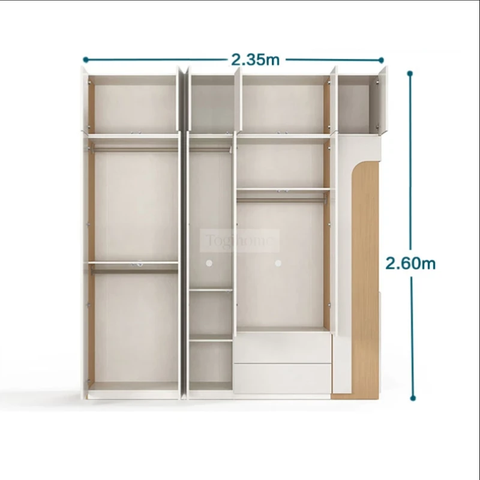 Tích hợp kệ mở tiện dụng: Bên hông tủ có thiết kế kệ mở đa năng, giúp bạn có thể trưng bày sách, túi xách, hoặc vật dụng trang trí, vừa tiện lợi vừa tăng tính thẩm mỹ cho căn phòng.