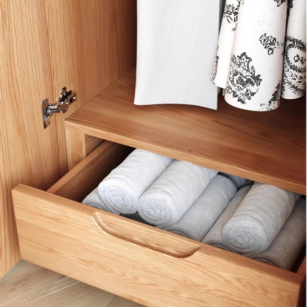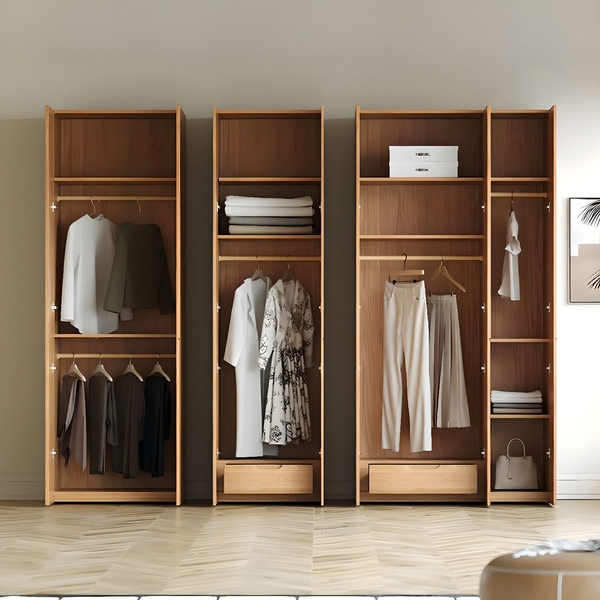 Công năng: Bên trong có thể chia thành nhiều khoang với thanh treo quần áo, kệ để đồ gấp, hộc tủ kéo để phụ kiện hoặc chăn mền.