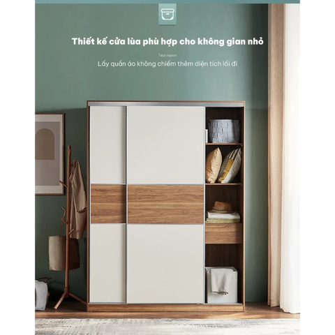Kích thước tham khảo: Phù hợp cho nhiều loại phòng ngủ từ nhỏ đến vừa, dung tích bên trong rộng rãi, có nhiều ngăn treo và kệ xếp đồ tiện lợi.