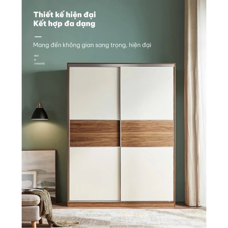 Tủ quần áo cửa lùa hiện đại là sự lựa chọn hoàn hảo cho những ai yêu thích sự tinh tế, gọn gàng và tiết kiệm diện tích trong không gian sống. Thiết kế hình hộp chữ nhật với hai cánh cửa lùa trượt ngang nhẹ nhàng, vừa tạo sự tiện lợi khi sử dụng, vừa giúp không gian phòng ngủ trở nên rộng rãi và thoáng đãng hơn.