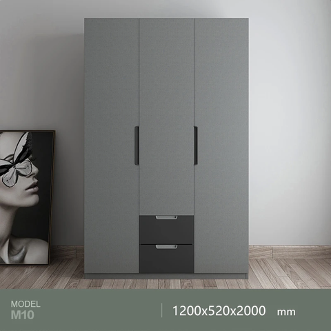 Tủ quần áo thiết kế dạng 3 cánh hiện đại với gam màu xám trung tính sang trọng, phù hợp nhiều phong cách nội thất. Bố cục tủ gồm khoang treo đồ rộng rãi, các ngăn kệ tiện dụng và 2 ngăn kéo phía dưới giúp sắp xếp quần áo, phụ kiện gọn gàng. Tay nắm thiết kế tối giản, chắc chắn, mang lại sự tinh tế cho tổng thể