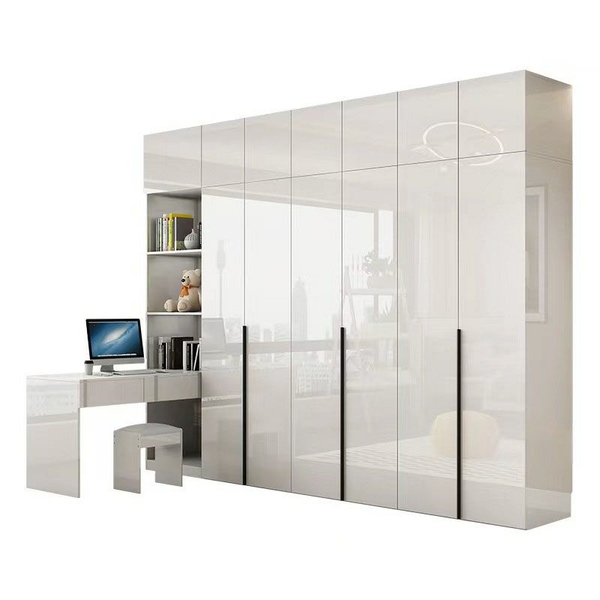 Tủ quần áo được thiết kế theo phong cách hiện đại, tối giản với gam màu trắng bóng sang trọng, phù hợp cho nhiều không gian nội thất từ phòng ngủ gia đình đến căn hộ cao cấp. Mặt tủ được phủ lớp bóng gương, giúp phản chiếu ánh sáng tự nhiên, tạo cảm giác không gian rộng rãi và thoáng đãng hơn.