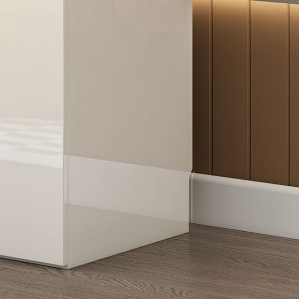 Tủ mang phong cách tối giản với các đường nét vuông vức, kết hợp màu trắng bóng tạo sự tinh tế và sang trọng, phù hợp với nhiều kiểu nội thất hiện đại và tối giản