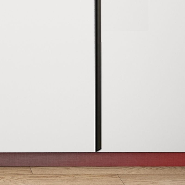 Tay nắm âm và tay cầm kim loại cao cấp: Các cánh tủ chính sử dụng thiết kế tay nắm âm tiện lợi, đảm bảo an toàn và tăng tính thẩm mỹ. Ngăn kéo và tủ phụ sử dụng tay cầm kim loại đen mờ tạo điểm nhấn hiện đại.