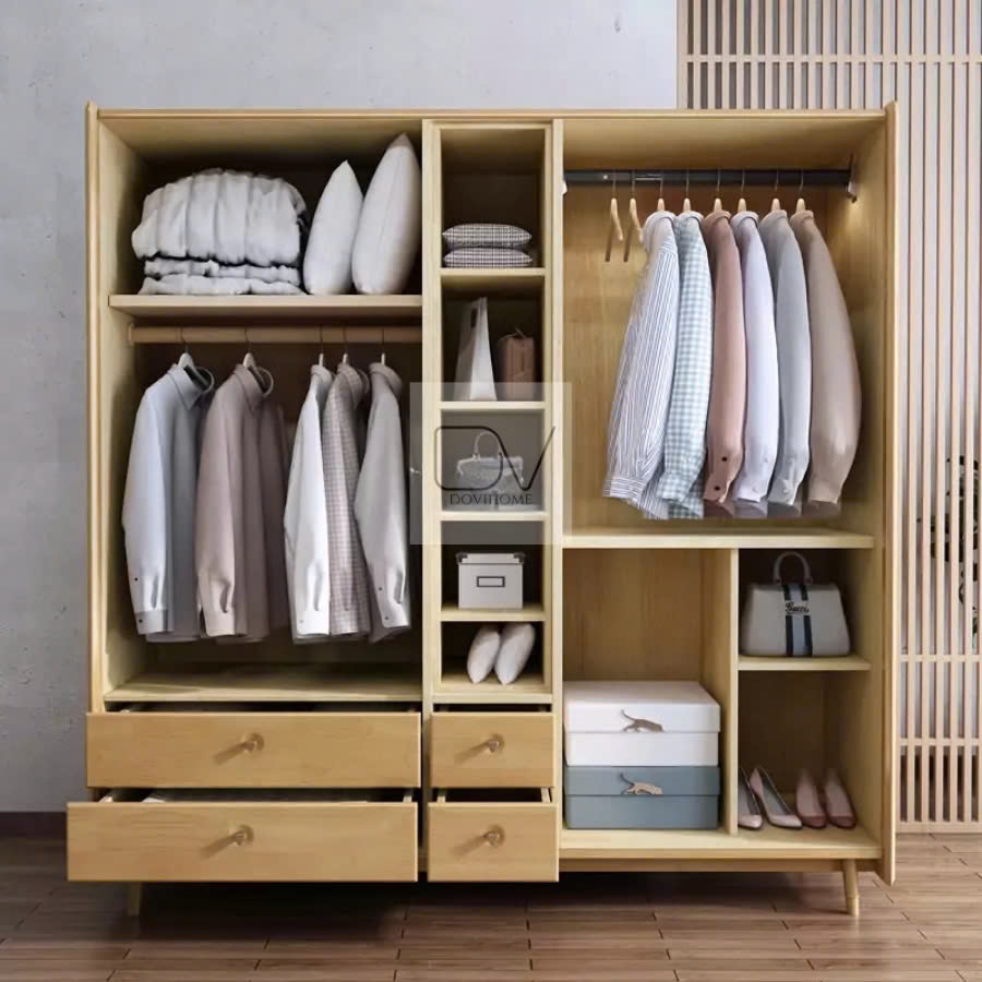 + Ngăn tủ trên cao: Dùng để lưu trữ các vật dụng ít sử dụng, chẳng hạn như vali hoặc đồ mùa đông.